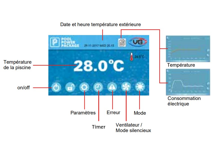 Les PAC de la série VBIV sont équipées d'un compresseur Inverter Mitsubishi puissant et économe en énergie. La combinaison de la conception technique optimale de la série VBIV et la technologie de contrôle intelligent font de la série VBIV des pompes à chaleur de piscine les plus économiques sur le marché. La gamme Pool Power Package de pompes à chaleur modèles VBIV 17, 20 et 29 en version standard et en version All Seasons sont les seules pompes à chaleur disponibles sur le marché avec un ERP label énergétique A+ selon la norme européenne EN 14825.