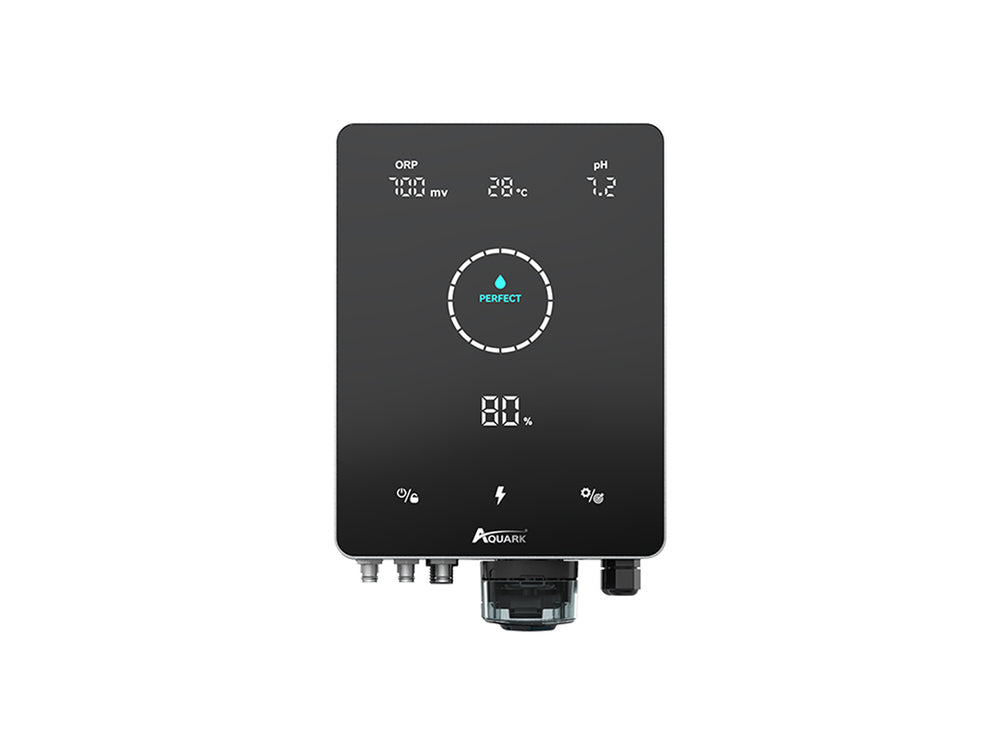 - Auto-régulation de 0% à 130% de la production. La production de 130 % permet d’obtenir rapidement une piscine bien désinfectée, par exemple pour une évènement